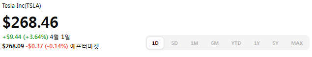 오늘은 테슬라에 대한 얘기를 해보고, 현재 상황과 향후 추세도 같이 예측해보겠습니다(작성일 4/2기준)